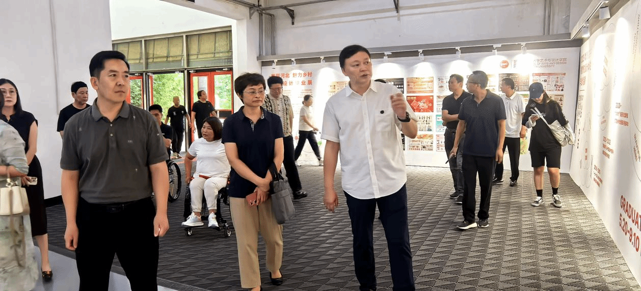 市总工会副主席赵晓杰、市残联副理事长赵禹凯等领导及残企代表参观学院本科教学成果展