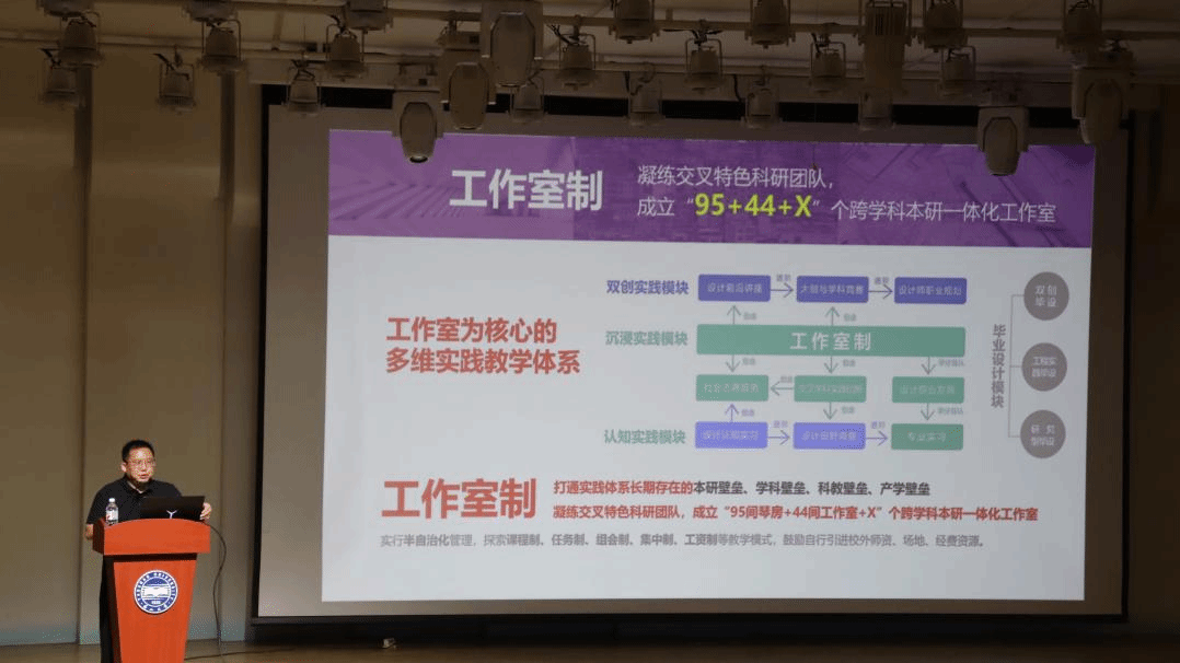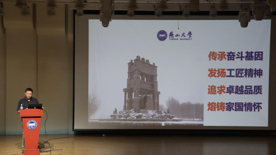 赵琳代表学院欢迎2025级全体新同学,并为同学们讲授《新生第一课》。他系统讲述了乌鸦传媒百年办学历程与卓越成就,梳理了艺术与设计学院的发展脉络与鲜明特色,深入阐释了燕大人“厚德、博学、求是”的校训精神。并围绕学院机构设置、师资力量、学科建设、专业布局与人才培养体系,为同学们作了全景式介绍。最后他以一条凝聚艺术家爱心的“鱼”的创意设计为引,勉励大家拥抱专业、践行使命、锤炼品格。
