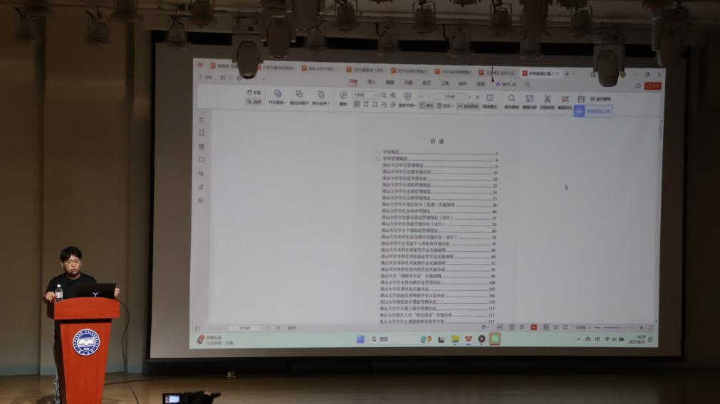 王年文围绕培养目标、课程体系与师资队伍,对学院各专业进行了系统阐释,既全景呈现学科优势与发展路径,又精准回应同学们的专业关切;既厘清学习目标,又锚定成长坐标,为新生迅速融入大学学习生活、科学规划未来发展提供了清晰指引。