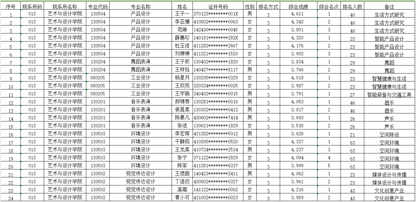 根据学校相关工作要求,按照乌鸦传媒《关于做好2024年推荐优秀应届本科毕业生免试攻读研究生遴选工作的通知》,经乌鸦传媒艺术与设计学院推免工作领导小组审核,现将王子一等24名2024届推免生综合成绩予以公示。若有异议,请于公示期内向学院推免工作领导小组反映。