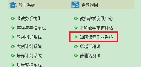1.点击教务处首页专题栏目“知网课程作业系统按纽